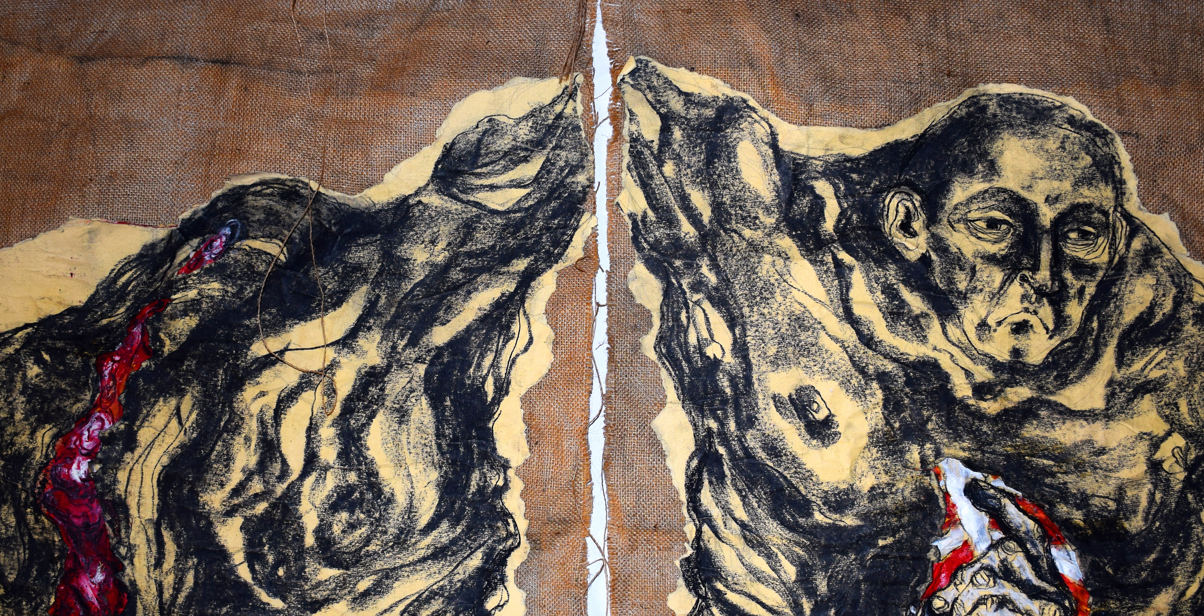 "Columna" • 1.7 m x 2. 4 m • charcoal and oil on paper, on iuta • 2018, all credits belong to Anna Botticini
