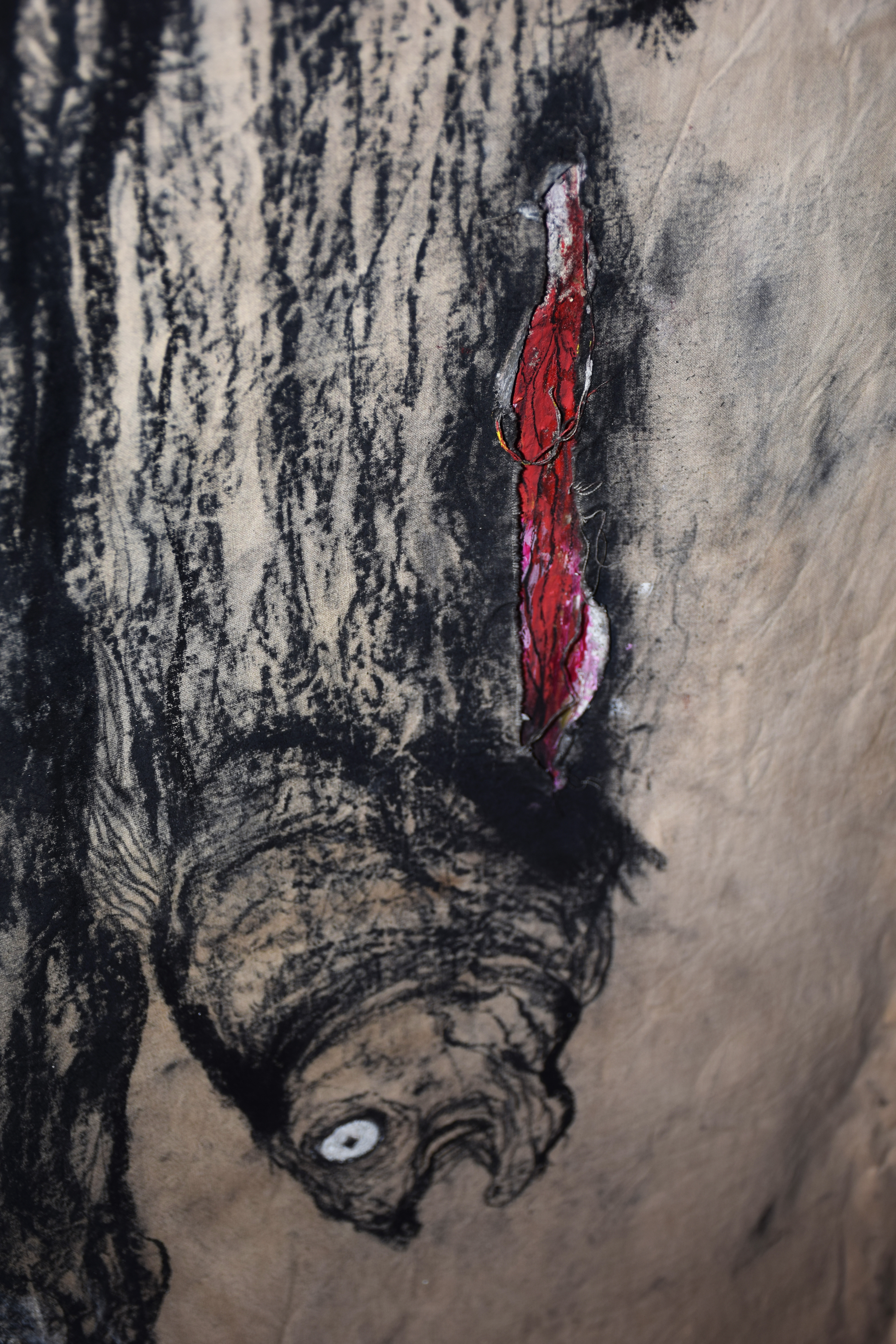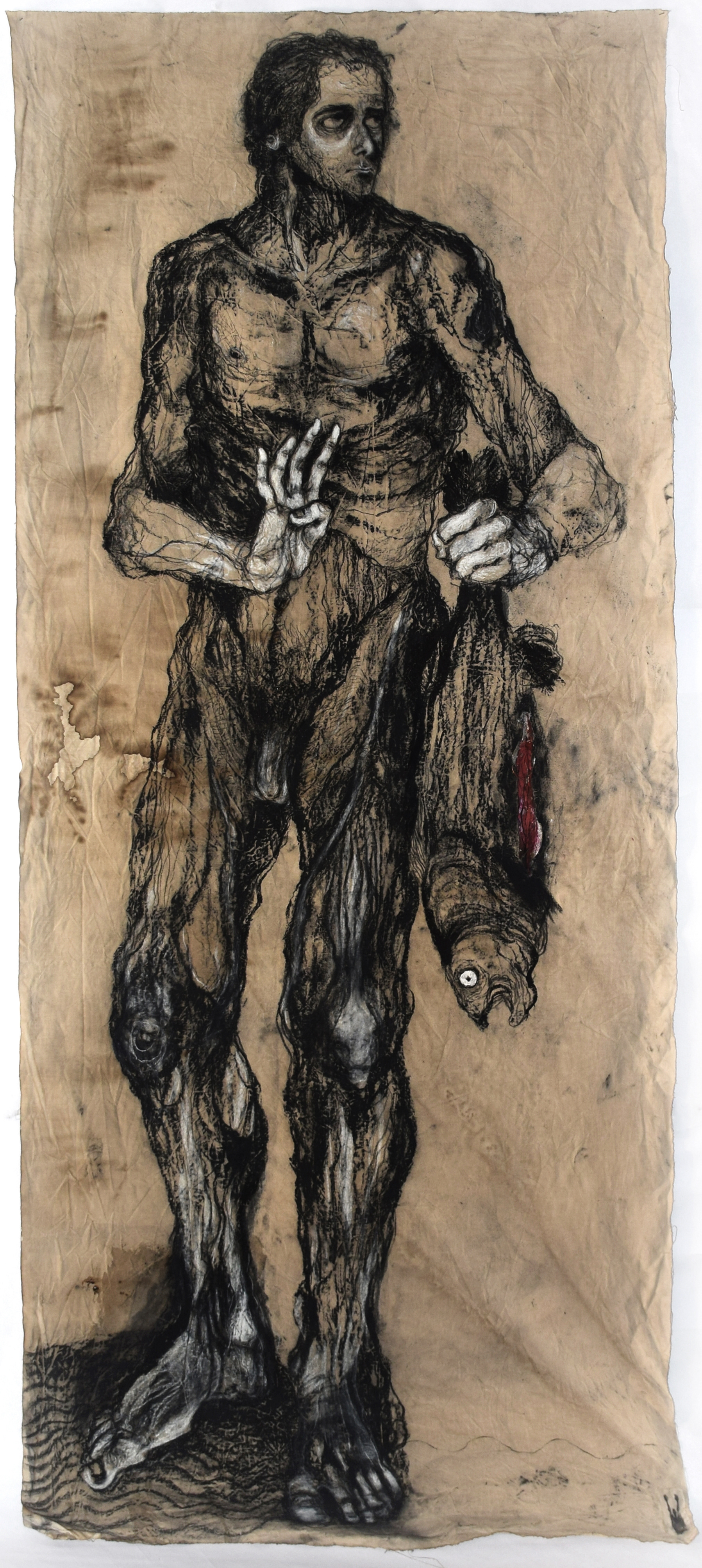 "The fourth fish" • " il quarto pesce" • Charcoal, oil and mixed tecnique on linen • 2.05 m x 0.90 m • All credits belong to Anna Botticini• 2019