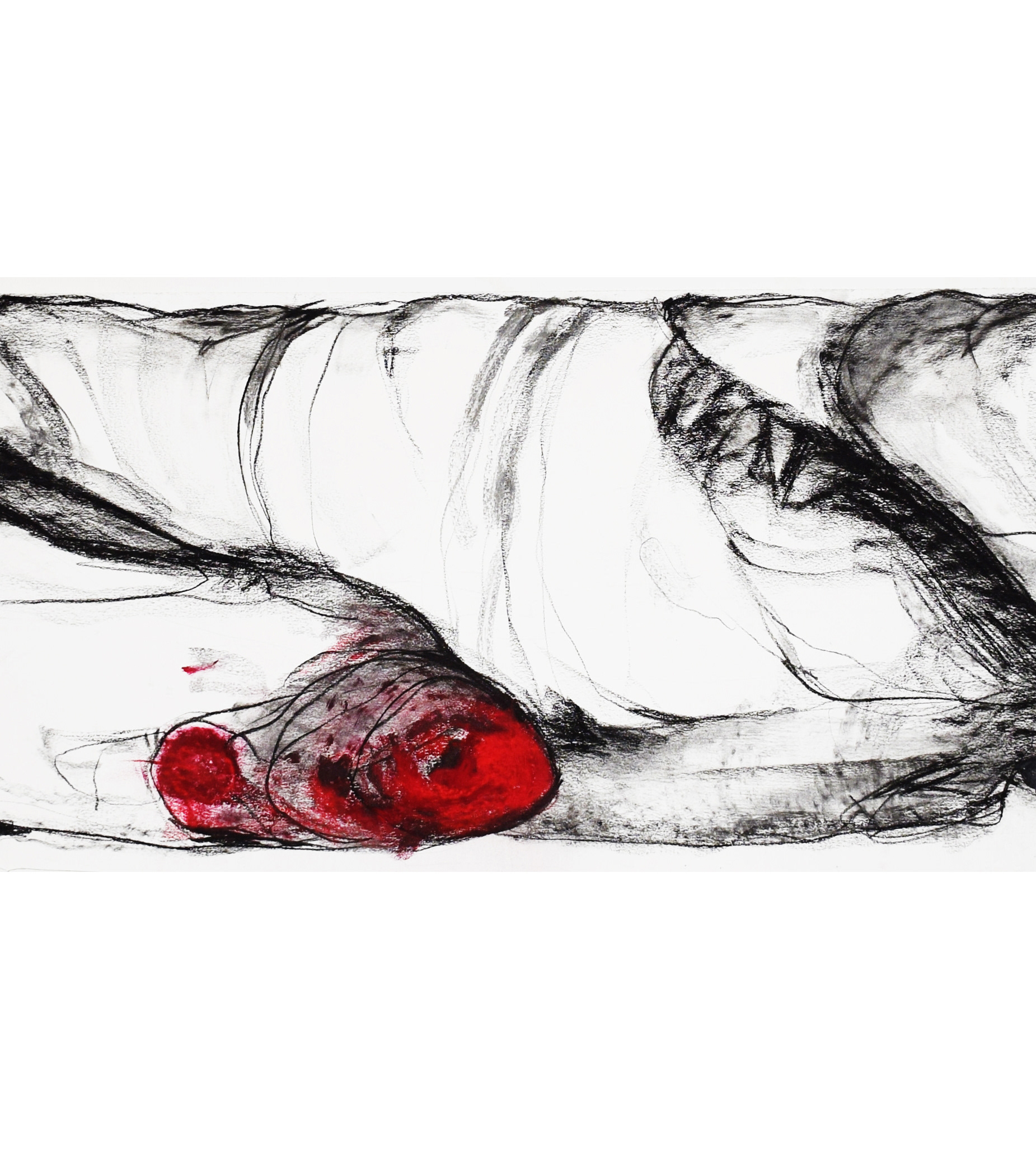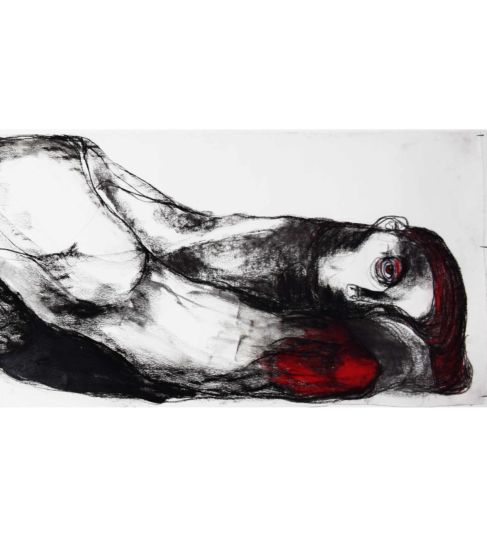 "The lying one" • 30 cm x 190 cm • Charcoal, ink and oil on paper • 2017 all credits belong to Anna Botticini