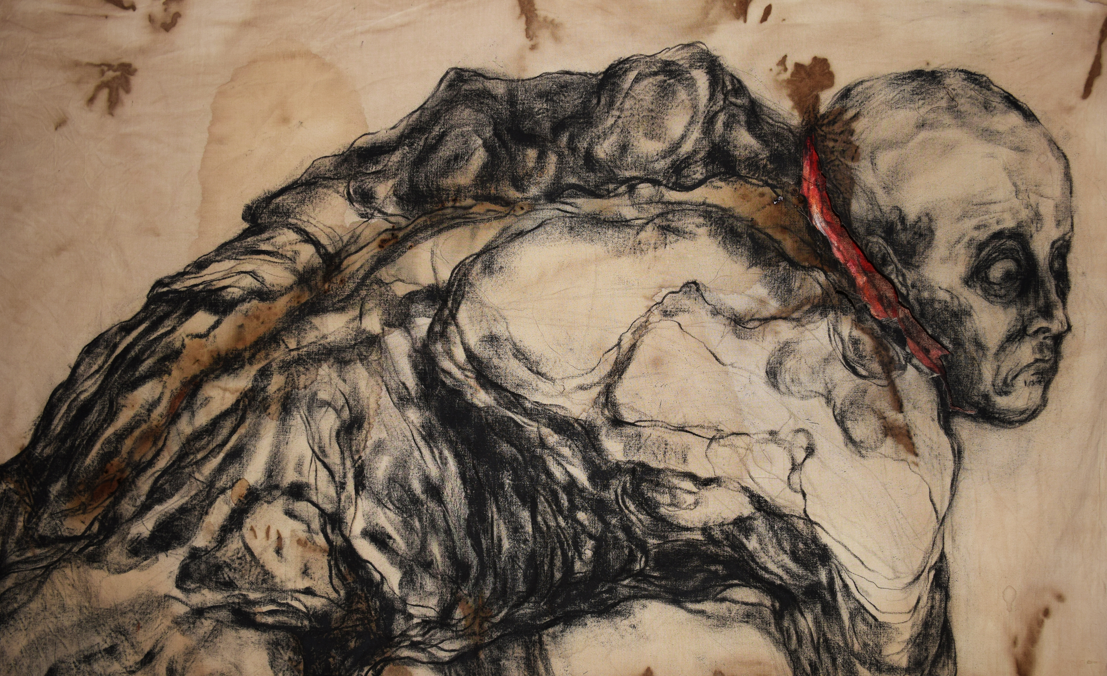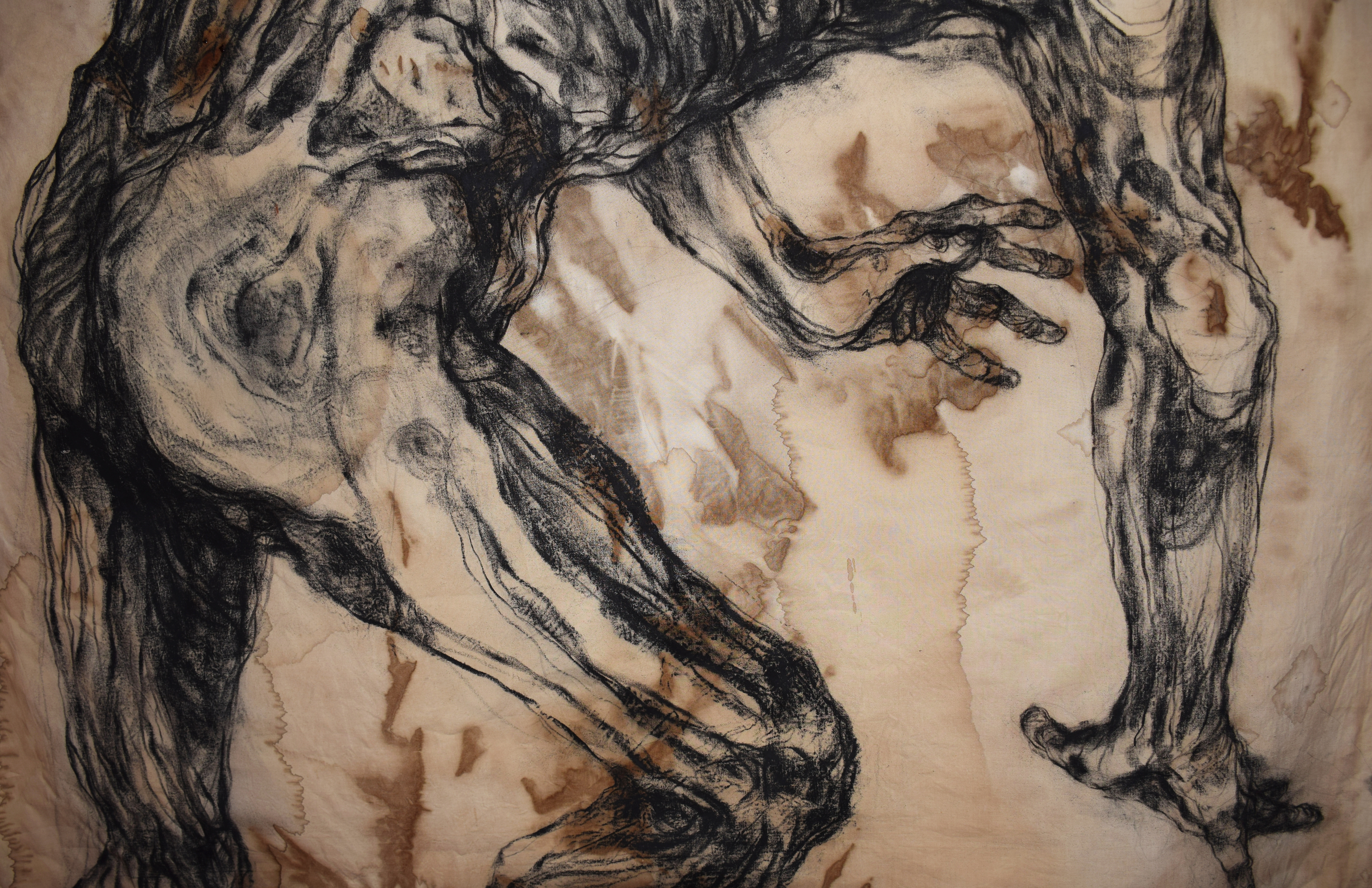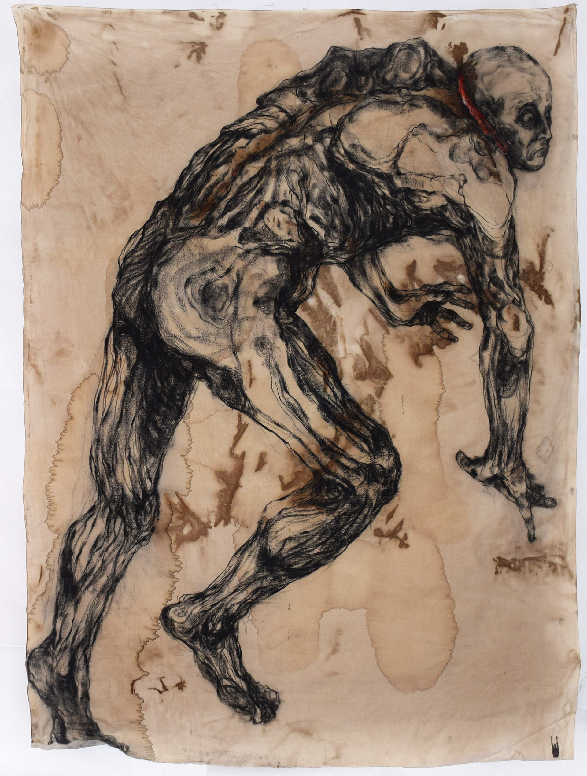 "The man who stumbles" • Charcoal and mixed tecnique on linen • 2 m x 1.60 m • All credits belong to Anna Botticini, 2020