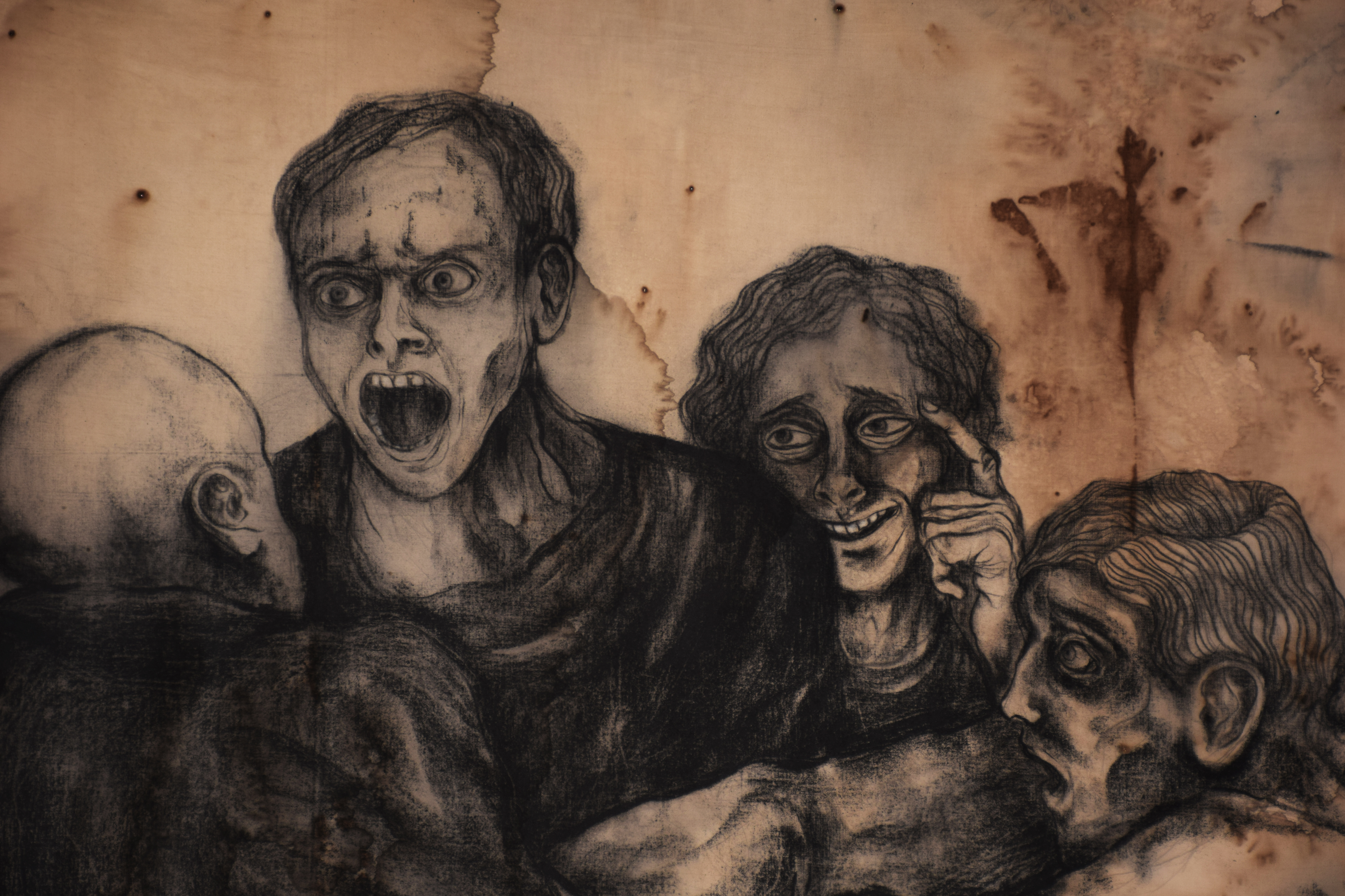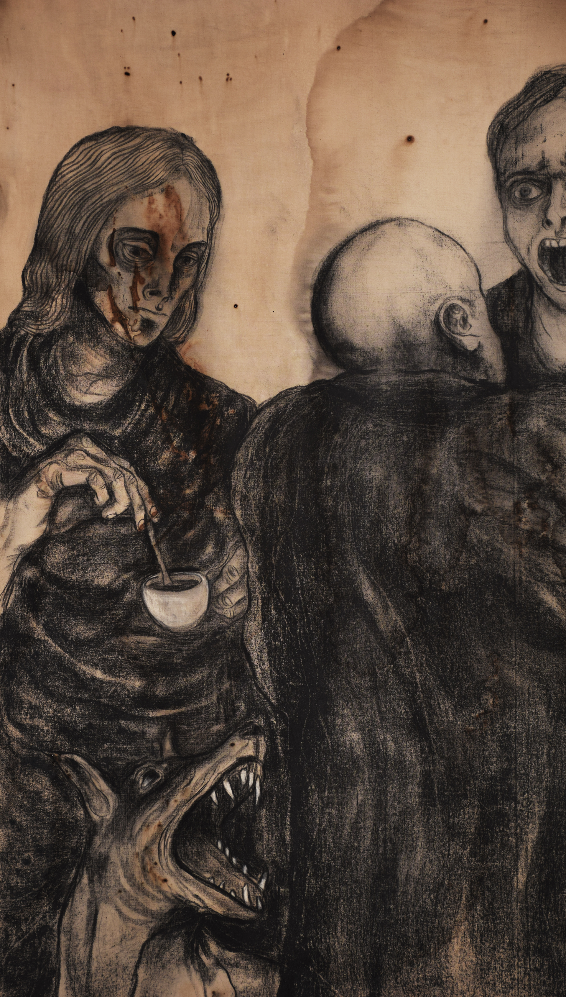 "The offence", "l'offesa", mixed technique on linen, 150 cm x 150 cm, All rights belong to Anna Botticini, 2020